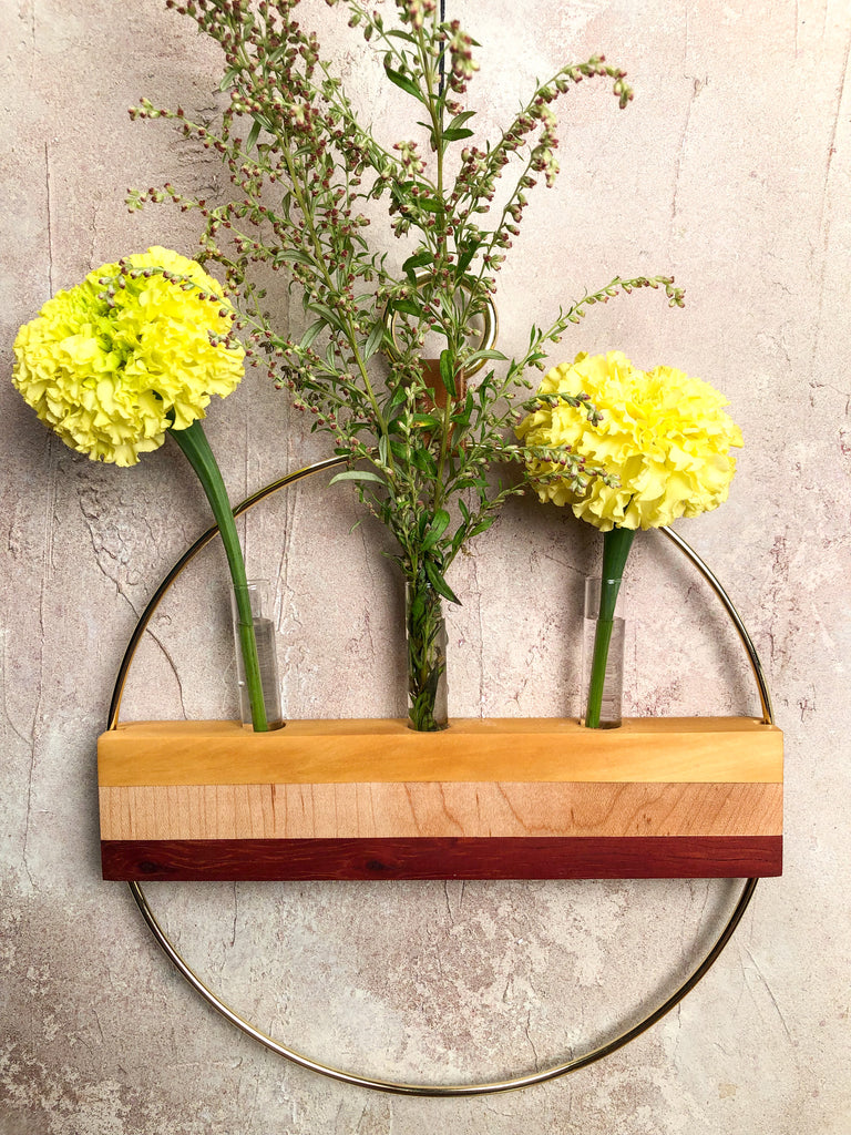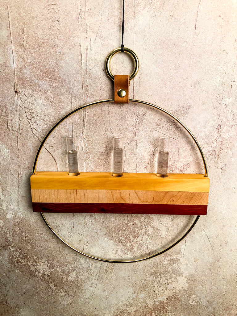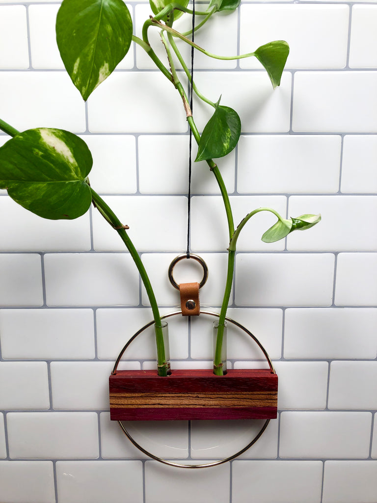 The propagation stations have a brass ring and a unique base made from a variety of exotic woods with test tubes for water. Due to the wood, no two bases will be exactly the same, but will be unique to you!