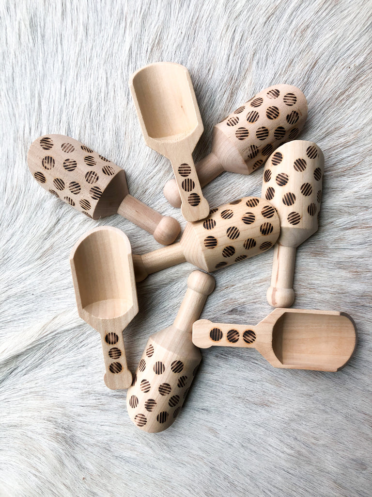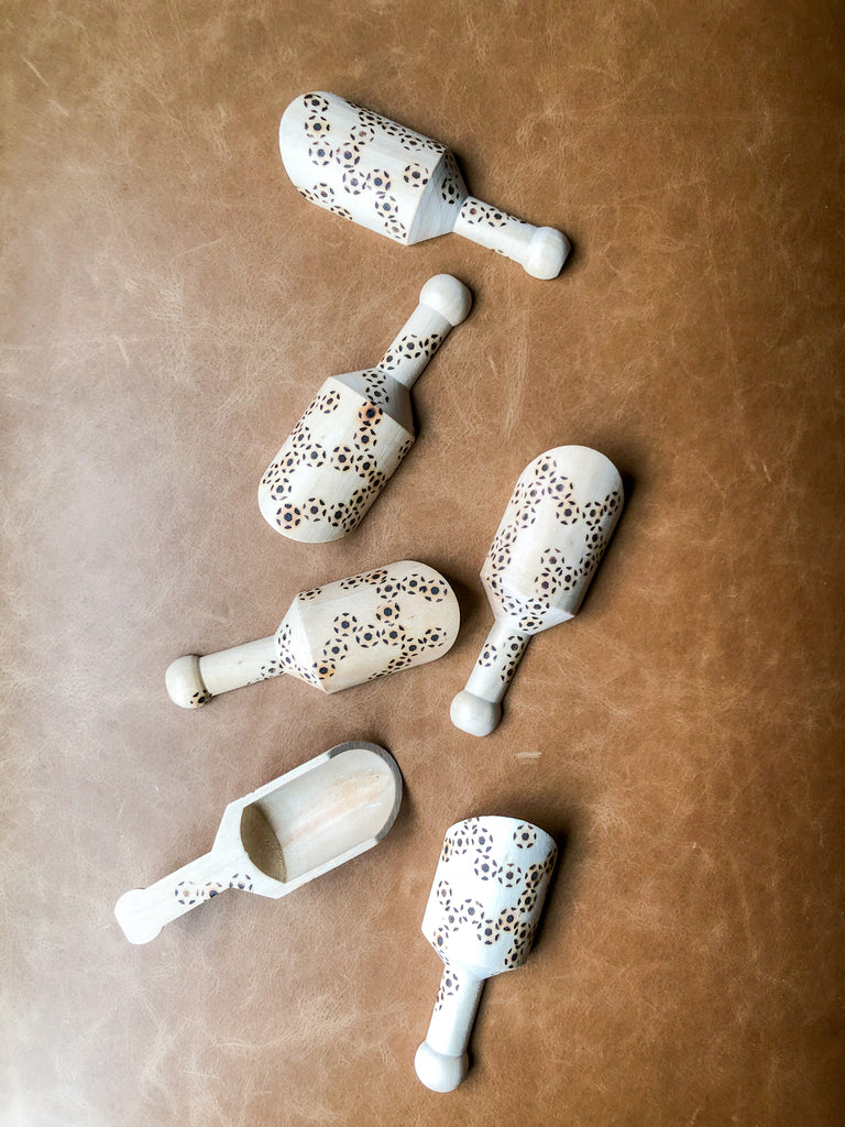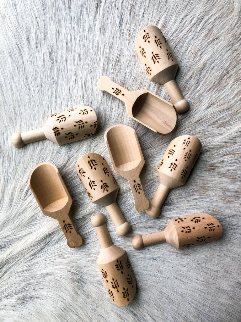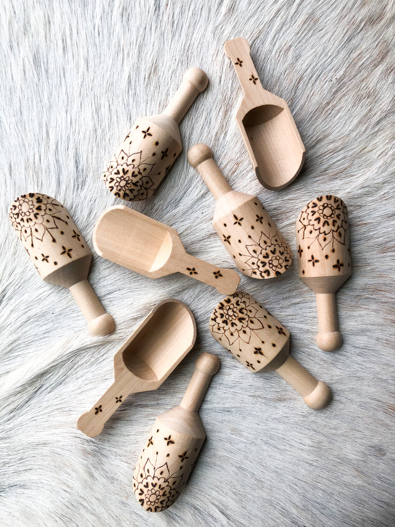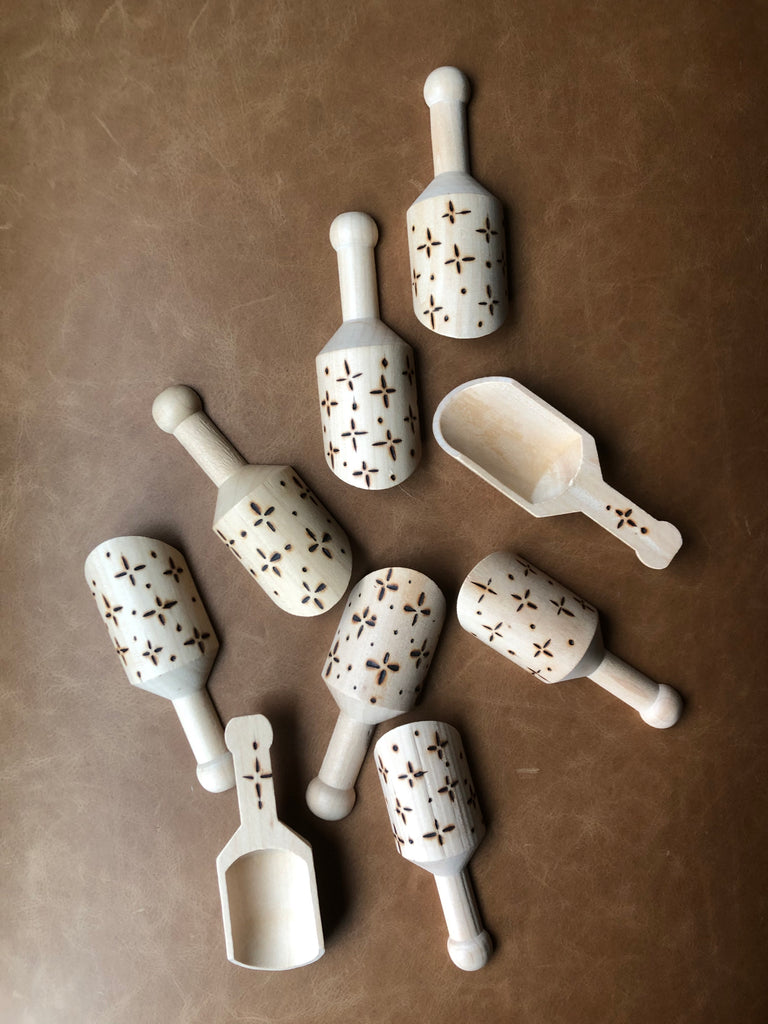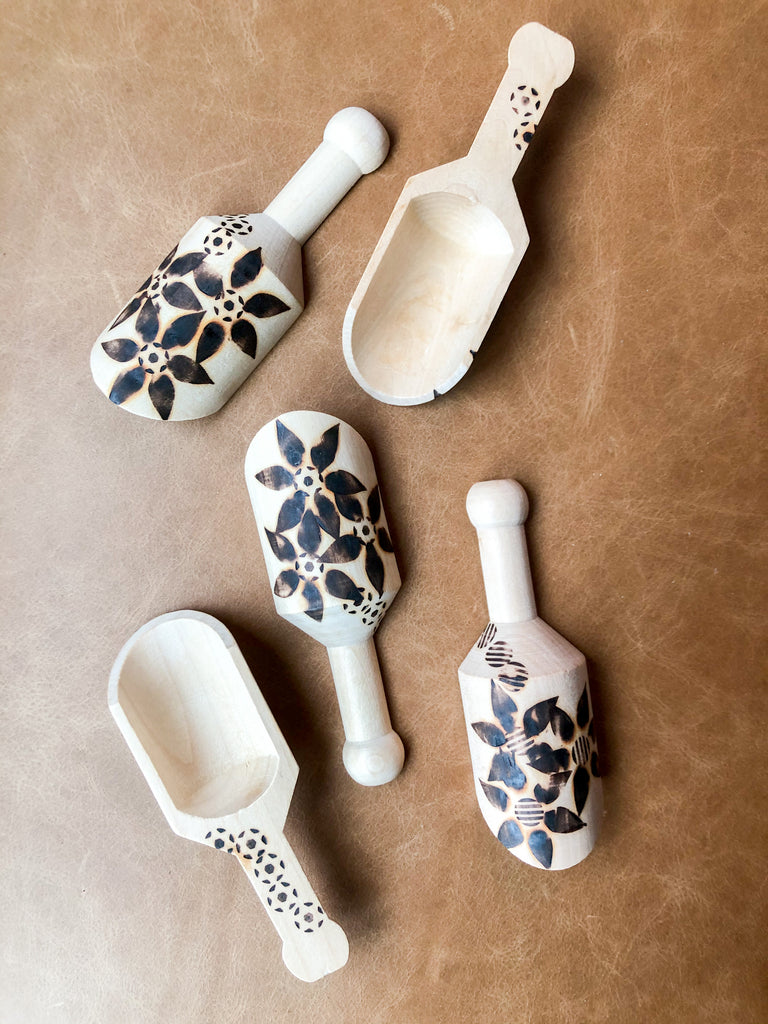 Due to the hand-drawn nature of wood burning, no two scoops are an exact copy.